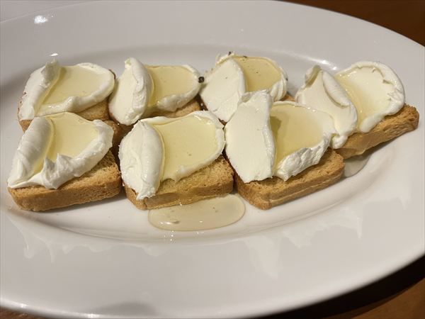 次は「マスカルポーネのハチミツがけ」(660円)。これ取り合いしました。笑 ビスケットとクッキー、ラスクを混ぜて割ったようなサクサク生地に、マスカルポーネとハチミツと、ブラックペッパーがピリリときいた一品。無限にいけそう。マスカルポーネ好きにはぜひ食べてほしい一品です。