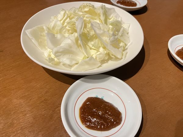必ず出てくるキャベツと、少し辛さのある旨味たっぷりの特製味噌。この特製味噌が筆者は大好きで、ぜひこの特製味噌を販売していただきたいぐらいです。 お鍋にいれても、炒め物に入れても最高においしいだろうな〜と食べる度に話しています。笑 そしてキャベツと特製味噌はおかわりOK!料理が出てくるまでの間や、箸休めにパクパクいただきます。