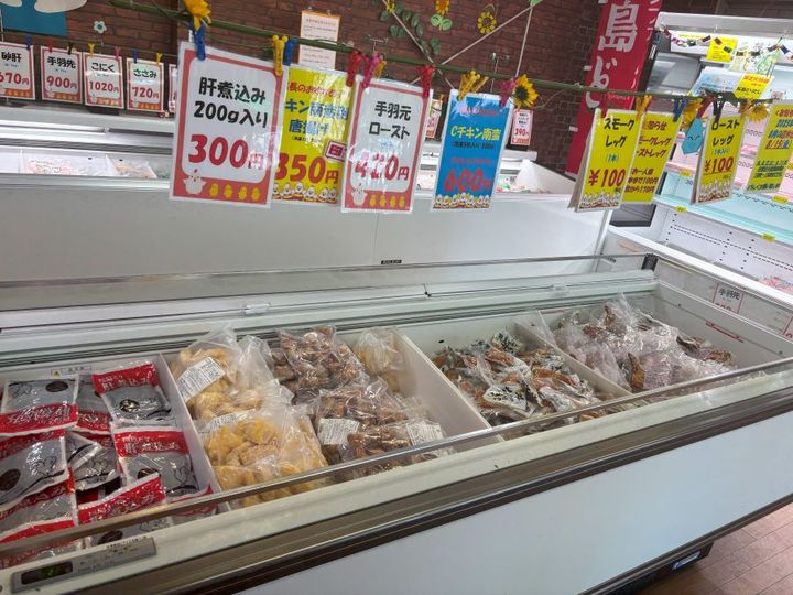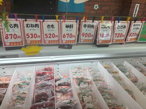 他にも冷凍のお肉は、もも、むね、きも、砂肝、手羽先、こにく、ささみ・・・と様々な部位が1キロのパックで販売。