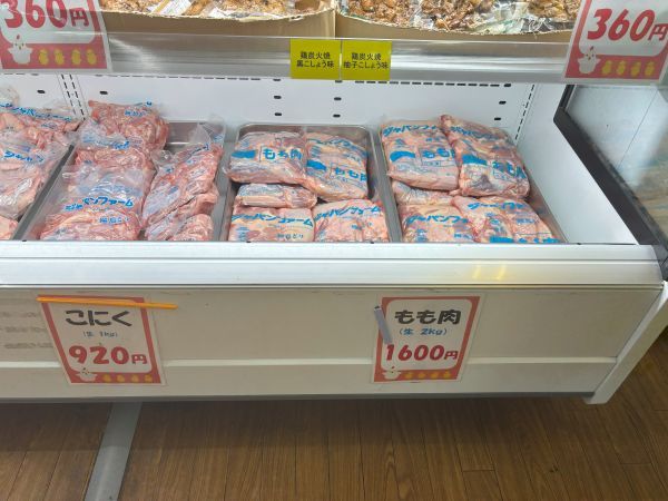 この日は冷凍されていない鶏肉が2キロ1,600円で販売されていました。100g当たり80円…!