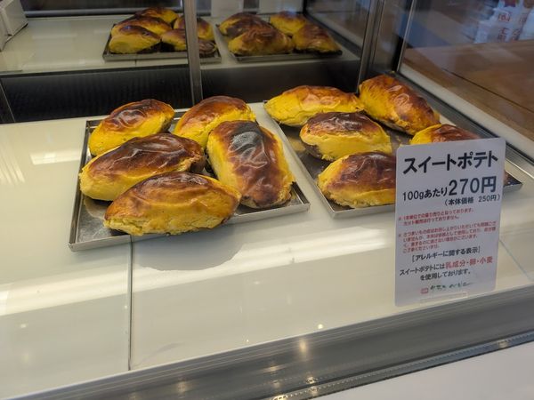 スイートポテトは100gあたり270円の量り売りです。大きさがいろいろあるので、自分にあったサイズのものを選んで買うことができます。
