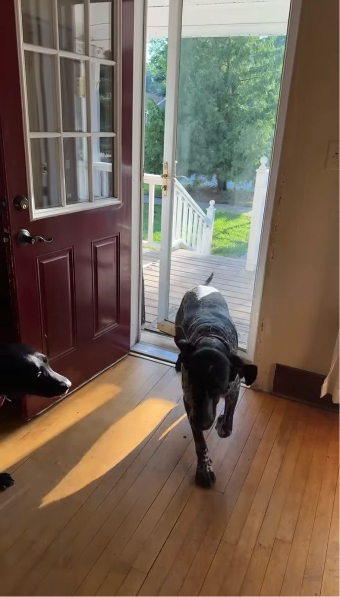 自力で家の中まで入って来たクーンハウンド。 その帰宅の様子は、こちらの動画からご覧いただけます。