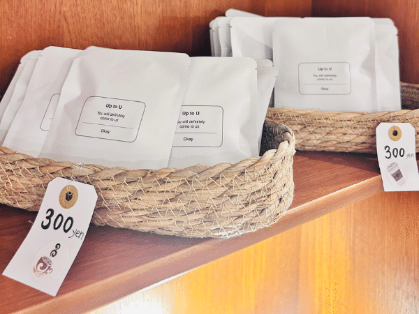 コーヒー豆は、飲みやすく上品な味わいのオリジナル焙煎の豆を使用。自宅でも楽しめるように、ドリップコーヒーの販売もありました。