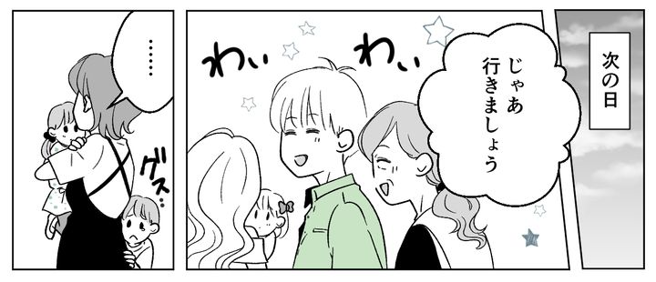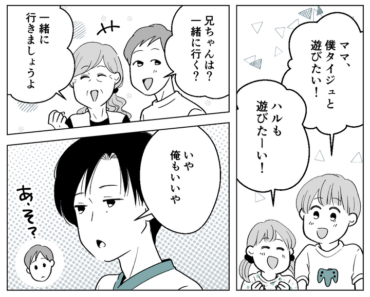 玄関を出た旦那と義母、義弟家族がわいわいと楽しそうにしています。誰も私たちを振り返りもしません。また今日も当たり前のように、私と子どもたちは留守番させられるのです。