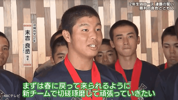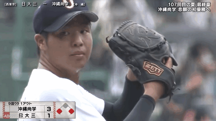 しかし末吉投手は、沖縄尚学が2点リードする9回裏にエラーで1・3塁のピンチに……。一発出れば逆転されるかもしれない危機的状況だったが、末吉投手は仲間たちとともにダブルプレーでしのぎ、沖縄尚学は日大三に3対1で勝って、全国3396チームの頂点に立った!