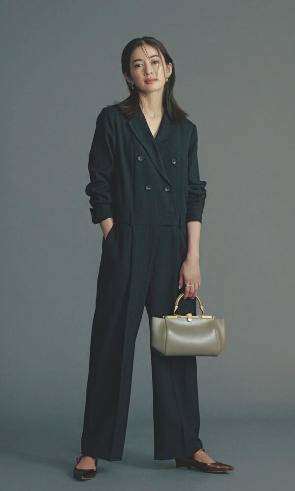 テーラーカラージャンプスーツ¥29,700(ザ ポーズ/ウィム ガゼット 玉川髙島屋S・C店)バッグ¥193,600(ザンケッティ/八木通商)パンプス¥16,500(ダイアナ/ダイアナ 銀座本店)ピアス¥3,850リング¥3,080(ともにヘンカ/ロードス)