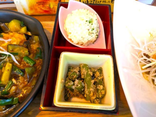 おばんざい2品は、とまらないおいしさのえび天とポテトサラダ