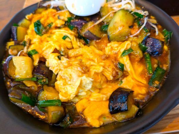 ちょい辛の麻婆茄子とふわとろ玉子!合います!おいしいです。