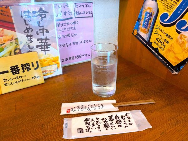 割り箸やおしぼりの袋に書かれた詩には「笑顔」という言葉が共通して入っています。お店は家族でされていて、お客様ともファミリーな雰囲気。アットホームで居心地の良い空間です。