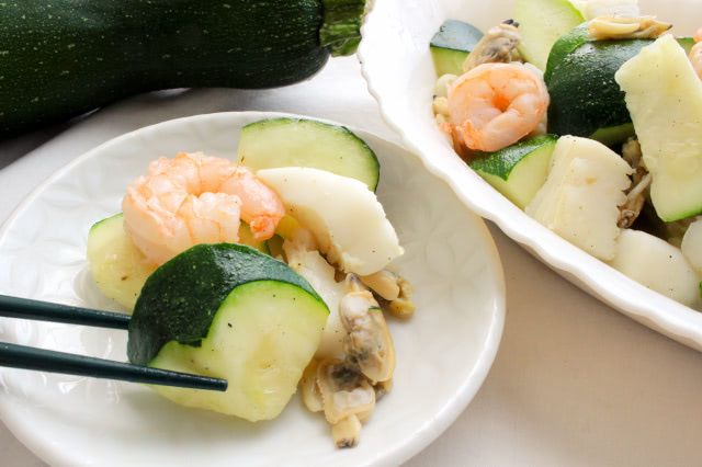 魚介とにんにくの旨味でイタリアンなお味!淡泊なズッキーニが濃厚なおかずに