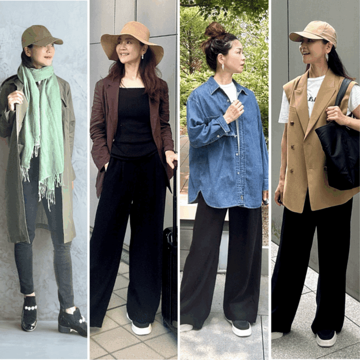 【50代ファッション】夏から秋にスイッチ!「ブラウン」「ジレ」「デニム」「キャップ」で作る中間服コーデ