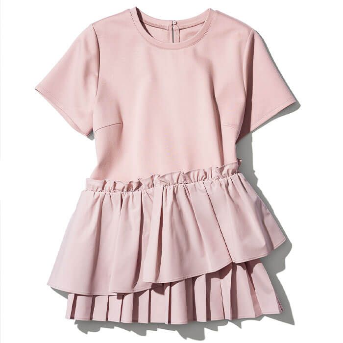 斜めのフリル切り替えで、上品さと可愛さを両立。