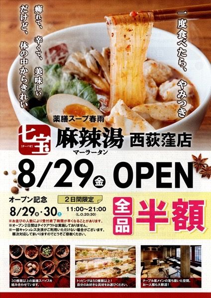 3. 【開店】西荻窪にも!8/29七宝麻辣湯(チーパオマーラータン)オープン
