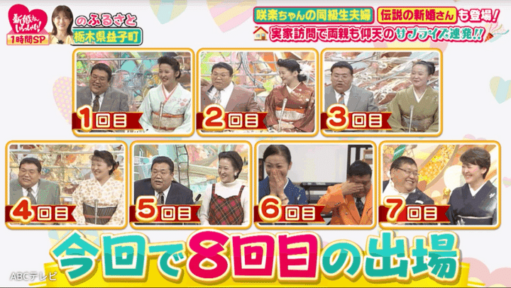 実はこちらのお宿、大将と女将さんが“伝説の新婚さん”。1992年11月の初出演から今回で番組最多となる8回目の出場に! 前回の2022年3月には、娘夫婦と出演し、次は親子三世代での出演を狙っているのだとか。