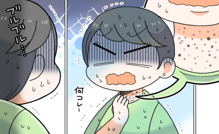 「え?首に虫!?」鏡を見て絶句した首元に広がる無数のできもの。皮膚科の診断は【体験談】