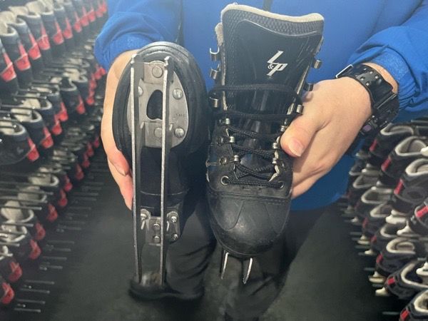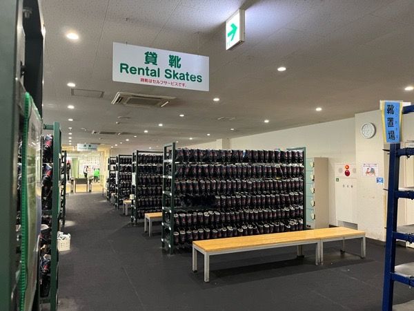 セルフサービスの貸し靴は1足500円。履き方がわからなければ、場内のスタッフが教えてくれます。