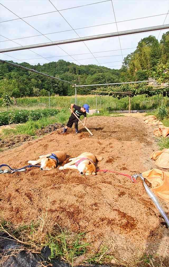 3. ふかふかの籾殻がお昼寝のベッドだ!熟睡する柴犬たちが話題に「酵素風呂だ!」「こんなに広いのに2匹は同じところでお休み」