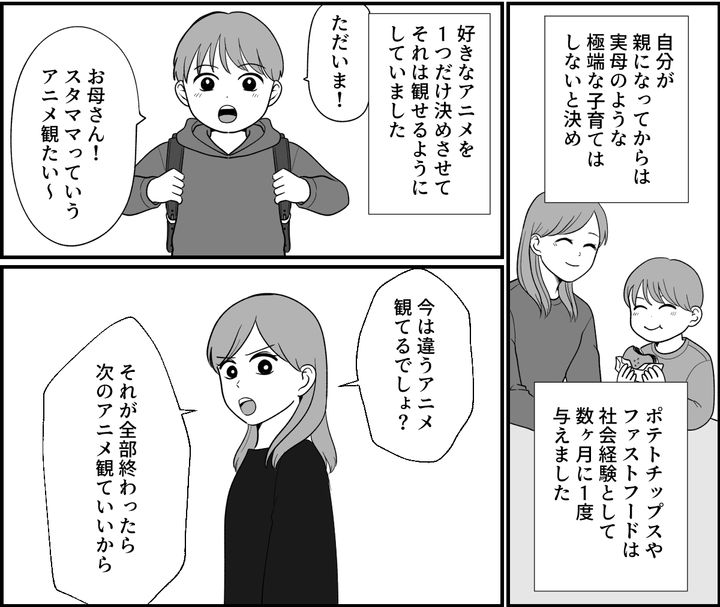 3. <ウチは普通じゃない…?>実母のような極端な子育てしない⇒アニメはひとつだけね!【まんが】