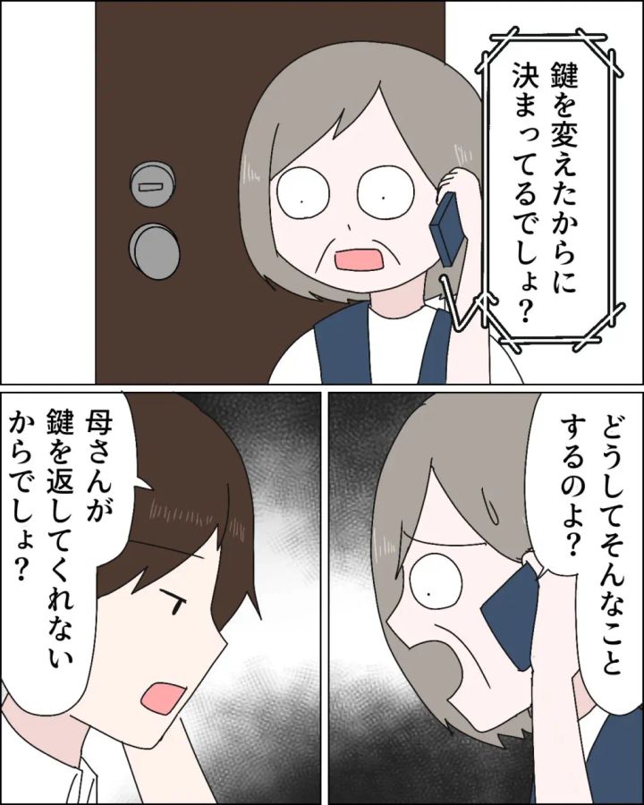 懲りない義母からの電話「家に入れないのよ!」「誰の家?」冷静な夫。勝手に合鍵を作った義母|ママ広場マンガ