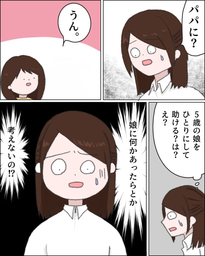 「5歳の娘をひとりにして助ける?は?え?」「娘に何かあったらとか考えないの!?」と頭が混乱。