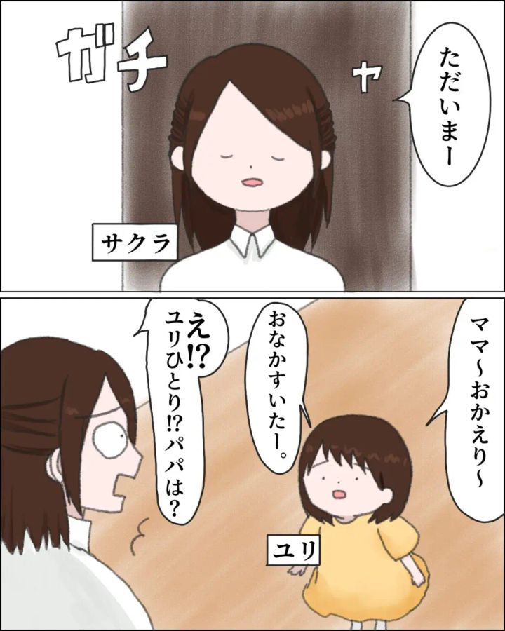 妻サクラさんは5歳の娘ユリちゃんと夫シンジさんの3人家族。ある日、サクラさんが仕事を終えて帰宅すると、何故かユリちゃんが一人でお留守番。