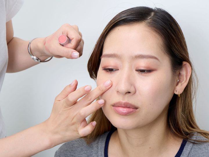 そして塗り方にもポイントがあり、「直塗りではなく、指にとってからポンポンと重ねていくと、しっかりと密着して崩れにくくなるのでおすすめです」とアドバイスをくれました。チークの崩れが心配な人はこの後にパウダー重ねるとヨレ防止に繋がりますよ。