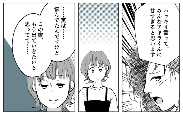 でもメグミさん以外の家族は外出すると聞き、しかもそのときのメグミさんの顔がどうにも放っておけなくて、メグミさんと話をすることにしました。