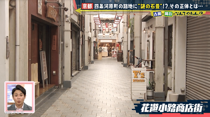 京都の石畳の隣には、花遊小路(かゆうこうじ)商店街がある。花遊小路には、かつて「花遊軒」という大きな精進料理店があり、昭和初期~中頃に役者や女優、舞妓や芸妓が足繁く通っていたらしい。この情報を知った河合と古川アナは、「今回も遊郭が関係している」と確信。調査開始からわずか30分で、京都のミニツアー・まいまい京都の代表・以倉敬之さんに推理の方向性を確認したところ、遊郭はまったく無関係だと判明し、思わず苦笑いした。