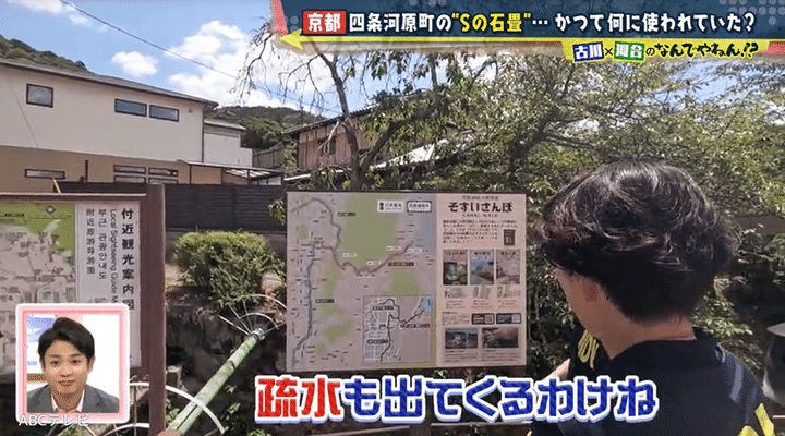 黒谷通をしばらく歩いた河合と古川アナは、やがて琵琶湖疏水の散策道「そすいさんぽ」を発見。琵琶湖疏水とは、滋賀の琵琶湖の水を京都へ運ぶ人工の運河だ。さらに、琵琶湖疏水が脇を流れる遊歩道・哲学の道でSの石畳によく似た石畳を見つけた! そこで彼らは、S=疏水と推測し、「Sの石畳は疏水ができる前に京都と滋賀の物流を支えた道」という最終予想を立てた。