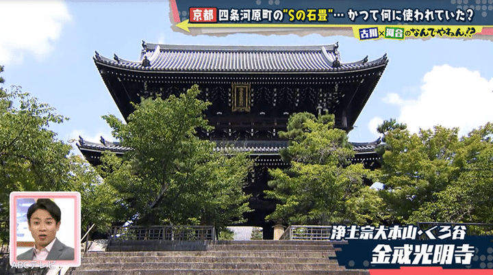 以倉さんいわく問題の石畳、通称「Sの石畳」は、「京都のいたるところにある」「元々別の用途に使われていたもの」「日本でも随一の重要なあるものが関わっている」とのこと。イニシャルのSは、「誰もが知っている“S”」だという。さらに以倉さんは、「地元では“くろ谷さん”の愛称で親しまれている、金戒光明寺そばの黒谷通をしっかり見ながら歩けば、もう答えが見えます」と、河合と古川アナにアドバイスした。