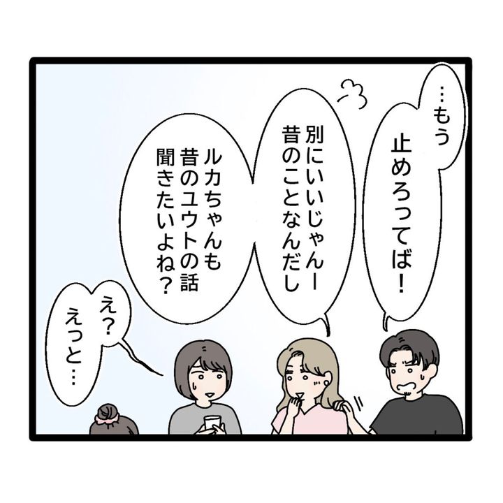 さすがにアサヒさんが「もう止めろってば!」と強めに言ったけれどユキさんは全く気にしていません。「別にいいいじゃんー昔のことなんだし。ルカちゃんも昔のユウトの話聞きたいよね?」と、今度は私に話を振ってきました。ユウトの昔の話は聞きたいけれど、ユキさんのことが好きだったって話、妻の私になぜ言うの?私は言葉に詰まって困ってしまいました。