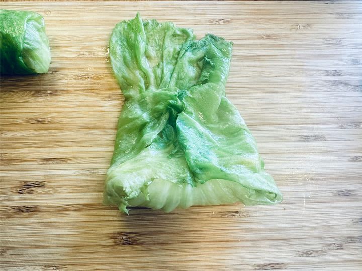 レタスは下からひと巻してから、左右を折り、さらに巻いていきます。今回は春巻きの要領で巻きました。
