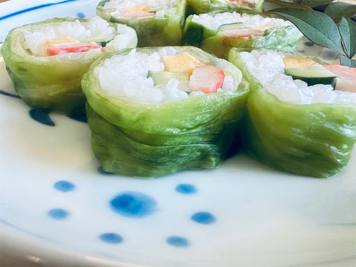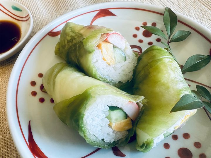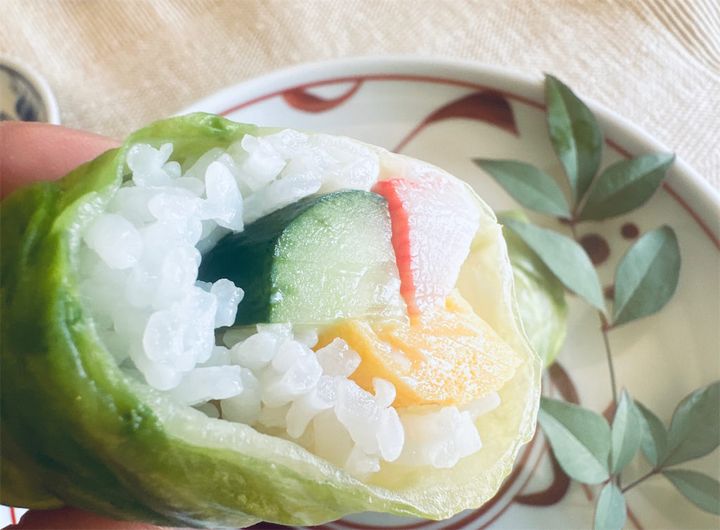 巻き寿司作りに欠かせないのは、何はなくても海苔でしょ!?というわたしの常識を覆す、斜め上レシピ♡ を愛媛県の農家から教わりました。海苔の代わりに使うのは…なんとレタスです。さっと湯がいたレタスに酢飯とお好みの具材をのせたら、あとはクルクルと巻くだけ!しかも巻きすナシでイケるっていうから簡単そうだし、なによりレタスの緑色が“超映え“です。でも、肝心のお味はどうかな? 水っぽかったり、酢飯と合わなかったりしないかな…。いろいろ気になったので、ここは作って確認しますか♪