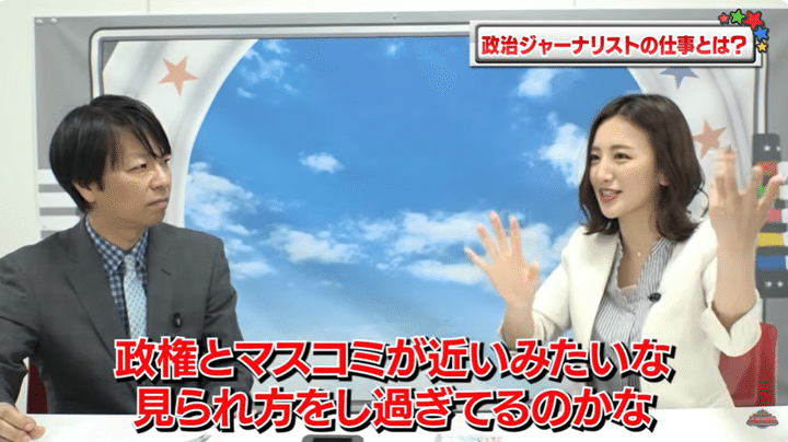 政治記者たちは、政治家本人に近づいて、だからこそ得られる情報を伝えるのが仕事。ただ、「政権とマスコミが近いみたいな見られ方をし過ぎてるのかなと思って…」と語るのは東アナ。特に斎藤元彦兵庫県知事の選挙騒動を受けて「どう報道するべきか」を、記者たちも考える機会が多くあった様子。新聞記者たちと話すなかで、東アナも「どうしたらいいのか」と感じているようだ。