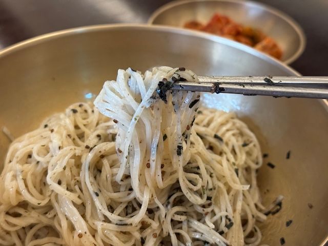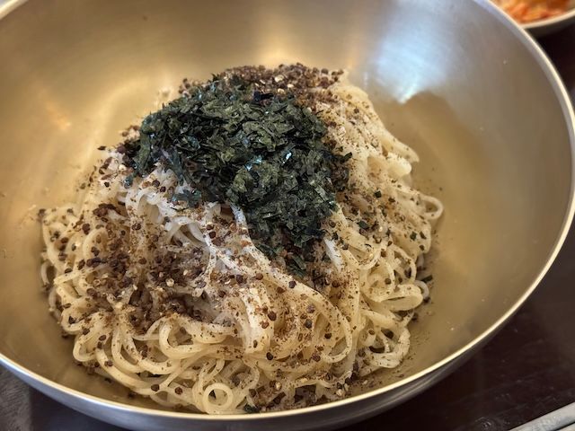 韓国での人気が、日本人旅行者の間にも伝わってきて、最近ではSNSの投稿でよく見かけるように。エゴマ麺が注目されている理由は、独特の香ばしさ。ごまやナッツに近いエゴマの風味は日本人の舌に馴染みやすくやみつきになり、旅の途中でも食べやすいと好評です。