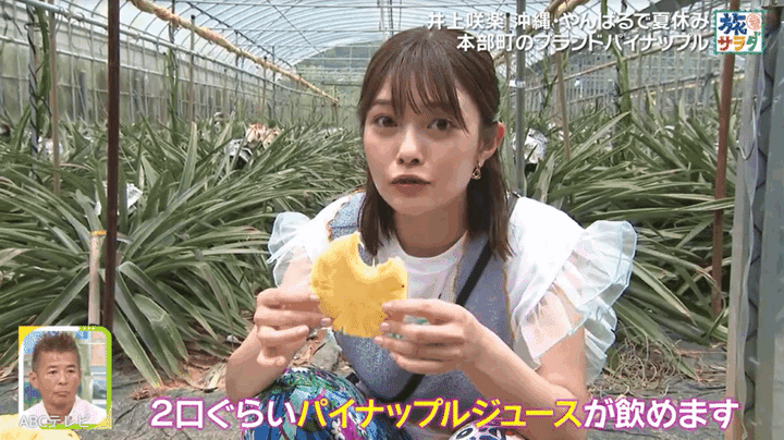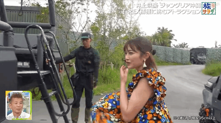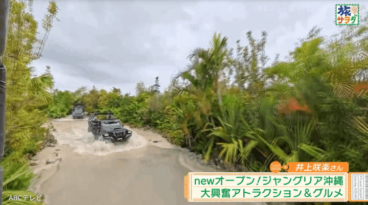 なお、井上の沖縄ロケ映像は、8月23日に生放送された『朝だ!生です旅サラダ』で公開された。彼女はジャングリア沖縄だけでなく、本部町のブランドパイナップルを収穫・試食し、橋で渡れる離島・古宇利島のカフェやホテルで青い海を眺めながら、地元産の食材を使った料理を味わうなどし、沖縄県北部を楽しみ尽くした。