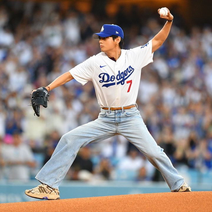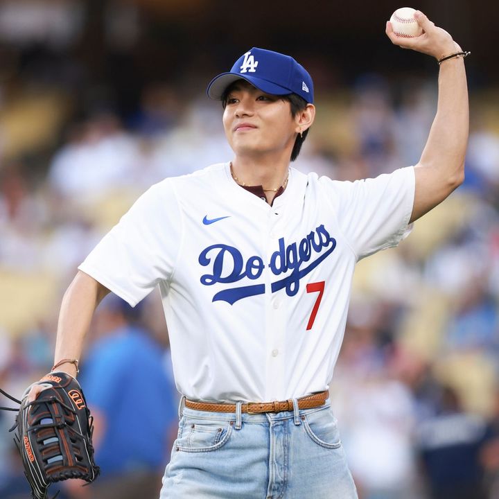 BTSのVが8月25日(現地時間)、MLBロサンゼルス・ドジャース対シンシナティ・レッズ戦の始球式に登板した。Vが着用したオリジナルユニフォームの背番号は「7」。BTSのメンバー7人にちなんだ背番号を背負い、始球式に挑んだ。さらに、大きなコミッショナーズ・トロフィーを手にした写真も公開された。