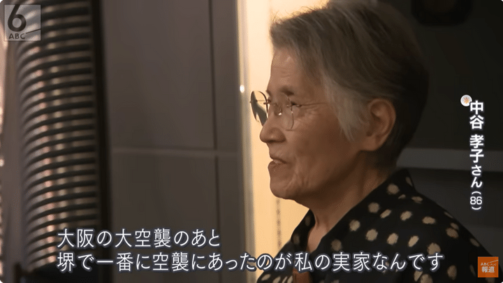 中谷孝子さん(86)は当時6歳。空襲の体験を人に話すことはこれまでありませんでしたが、この取り組みを知り、自らも口を開く決意をしました。堺市内で工場を営んでいた中谷さんの実家。空襲を受けて家族と防空壕に逃げるとき、中谷さんは衝撃の光景を目にします。