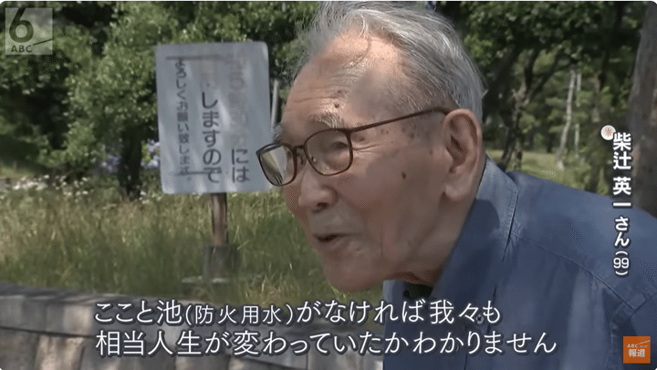 当時19歳だった柴辻英一さん(99)は堺市内にあった自宅にいました。空から「雨あられのごとく」降り注ぐ焼夷弾。燃えさかる戦火の中、柴辻さんは家のすぐそばにあった池のように大きな防火用水に飛び込み、長時間身を潜めることで命を救われました。