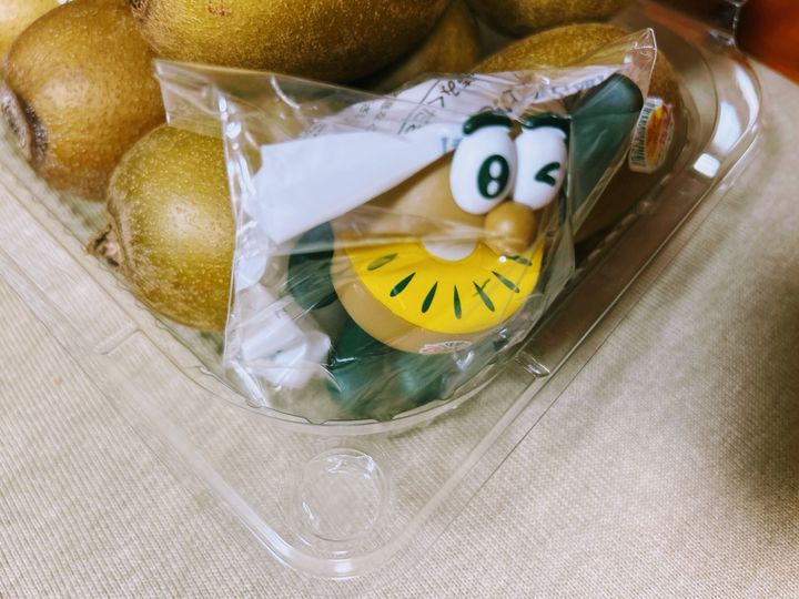 よくみると、袋に入って上手にキウイに隠れてる…!