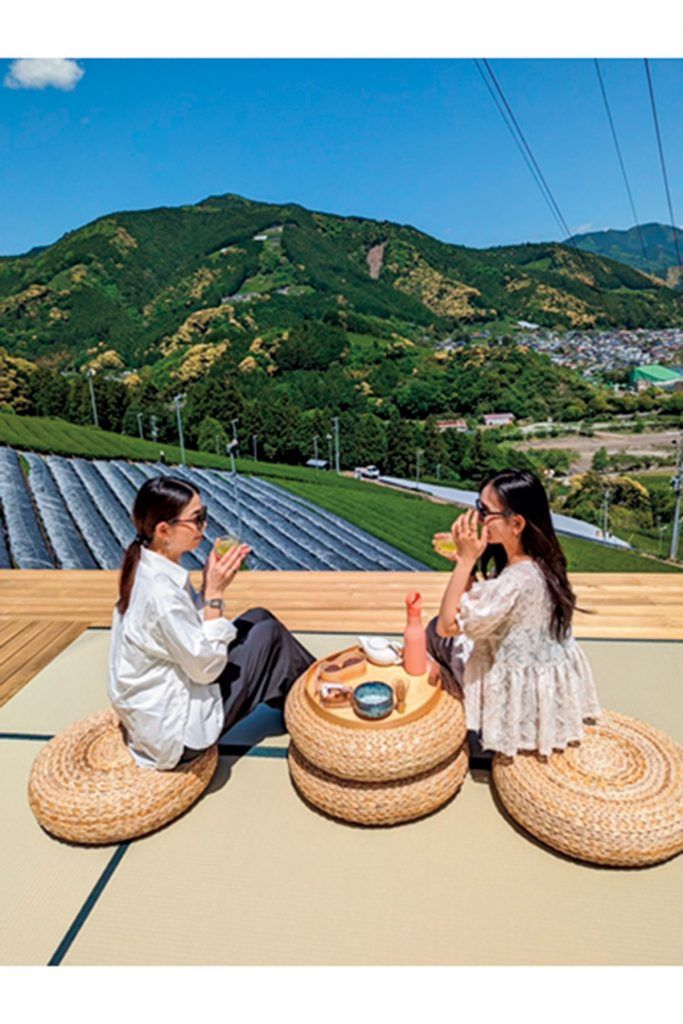 山の斜面一面に広がる茶畑を見渡せる畳のお茶の間で、極上の煎茶と茶菓子をいただきながらのゆったりした時間は至福。