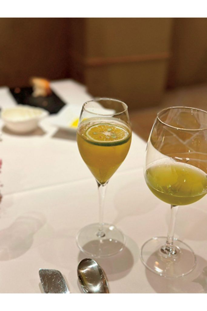 季節により変わるお茶の葉を使用したドリンクとともに、地元の食材をふんだんに取り入れたフレンチコースを味わえます。