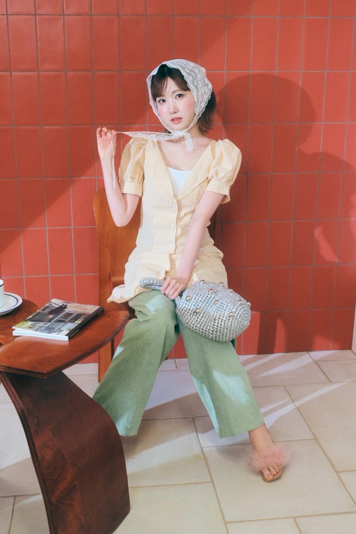 トップス 1,803円、パンツ 1,879円/ともにSHEIN MOD(SHEIN JAPAN)バブーシュカ 209円、バッグ 2,265円、サンダル 1,565円/以上SHEIN JAPAN