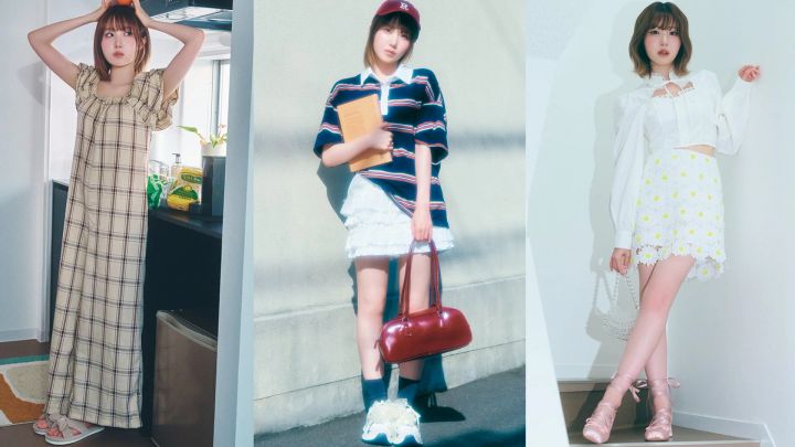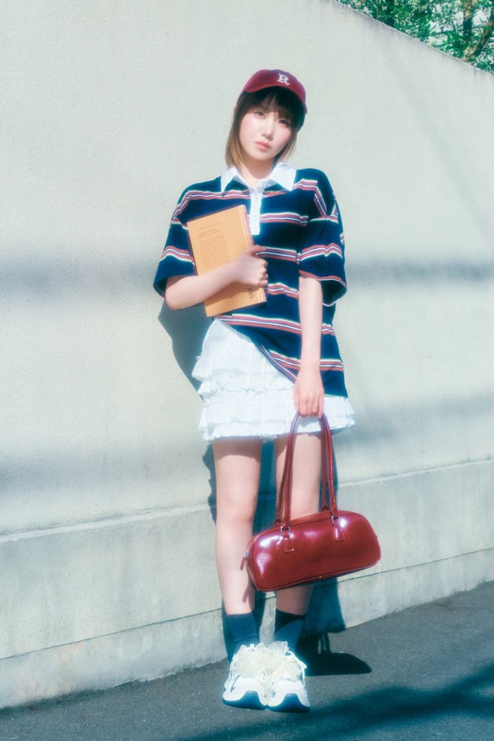 ポロシャツ 1,745円、フリルスカート 2,673円/ともにDazy(SHEIN JAPAN)キャップ 624円、バッグ 1,620円、スニーカー 2,826円/以上SHEIN JAPAN