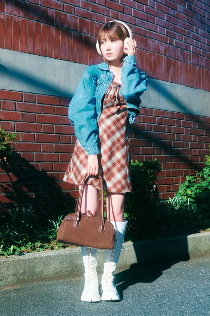 Gジャン 参考商品、キャミワンピース 2,031円/ともにDazy(SHEIN JAPAN)バッグ 1,559円、ブーツ 4,044円/ともにSHEIN JAPAN