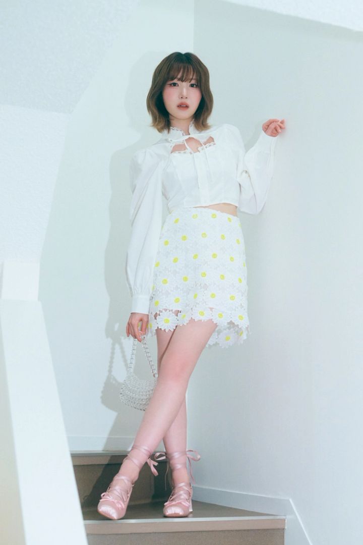 ガーリーなフラワーレースにミニをあわせて、THE女のコを意識して。