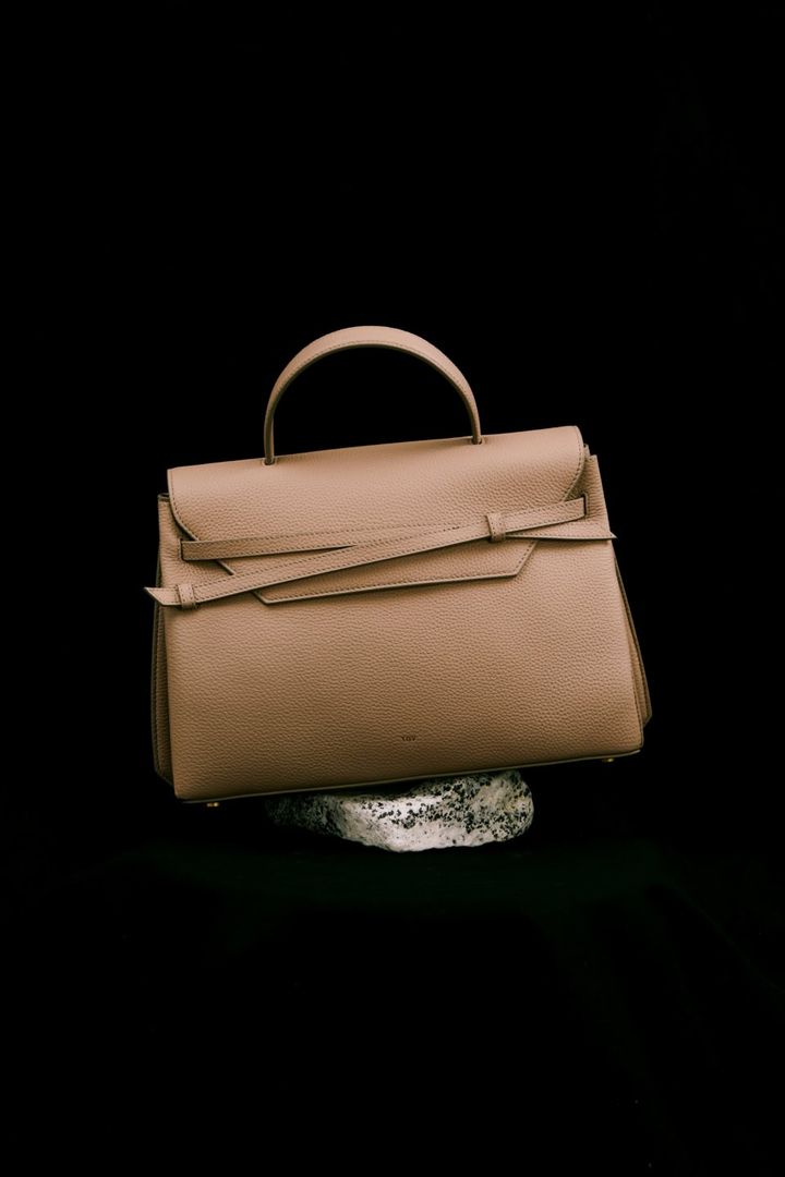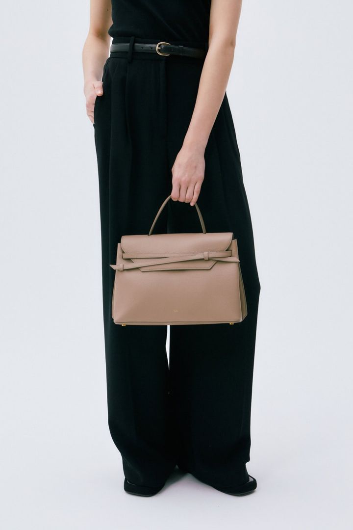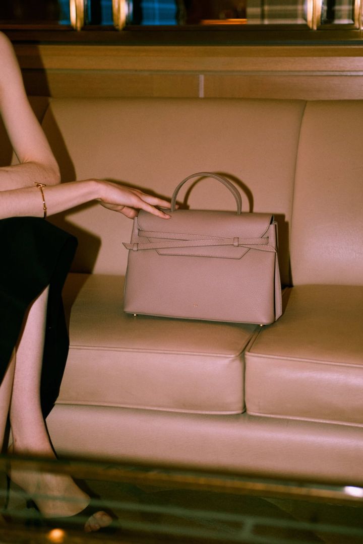筆者は観劇が趣味で、よく劇場に足を運ぶのですが、バッグを置けるような余分なスペースは座席にはないので、こういった膝の上に置け、座席の幅に収まるバッグが必須。観劇後の食事の席にもぴったりですよね。セットアップのようなスタイルにも、シンプルなドレスなどにも合わせやすく、バッグ特集の際、スタイリストの川瀬英里奈さんがリースしてきてくれたときからずっと気になっています。カラーは3色で、写真の絶妙なグレージュ以外に、サックスとブラックがあります。お仕事シーンにはもちろんですが、お子さんの学校関連の行事などにもオススメですよ。フラップがあり、中身が見えないのもキレイ見えする秘訣です。
