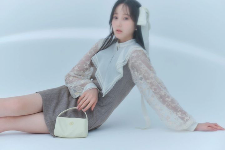 アイボリービジューレースブラウス 24,970円/LILY BROWN ブラウンミニジャンパースカート 15,950円/MERCURYDUO ルミネエスト新宿店 イヤリング 7,290円/アビステ ハンドバッグ 11,330円/minimute(HANA SHOWROOM)ヘアリボン/スタイリスト私物