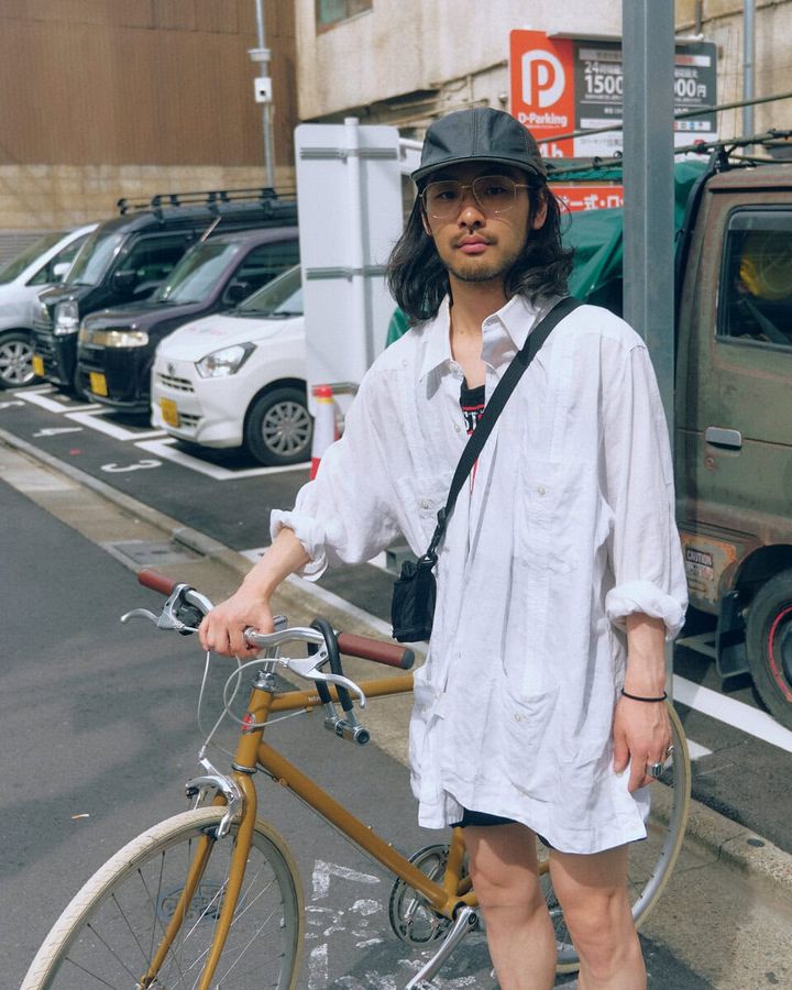 3. 【スナップ】デカシャツに合わせた短丈ショーツ、ヌケ感のあるサイジング、フックになる小物で作る独自の世界観