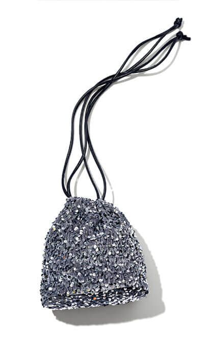 華やかなきらめき&マットなベロアをラフな巾着バッグで